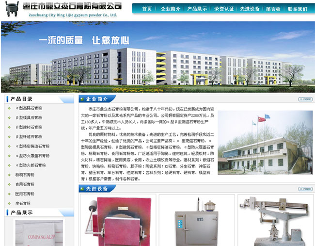 棗莊市鼎立杰石膏粉有限公司,始建于八十年代初,現(xiàn)在已發(fā)展成為國內較大的一家石膏粉以及其他系列產(chǎn)品的專業(yè)公司。公司擁有固定資產(chǎn)2200萬元,員工180多人,中高級技術人員20人,兩條國際一流的α型β型高強石膏粉生產(chǎn)線,年產(chǎn)量五萬噸以上。 優(yōu)良的原材物料,優(yōu)良的技術裝備,先進的生產(chǎn)工藝,完善檢測手段和近二十年的生產(chǎn)經(jīng)驗,創(chuàng)造了優(yōu)質的產(chǎn)品,公司主要產(chǎn)品有:α 型高強石膏粉、α 型陶瓷模具石膏粉、β型建筑石膏粉、α型精密鑄造石膏粉、α型防火覆蓋石膏粉、粉刷石膏粉、食用石膏粉等。廣泛地適用于陶瓷,建材建筑,輕質板材,防火材料,精密鑄造,醫(yī)用美容,食用,農(nóng)業(yè)土壤改良等行業(yè)。建材系列:嵌縫石膏粉、快粘粉、粉刷石膏粉、膩子粉;陶瓷系列:KS石膏、分生石膏、沖壓石膏、塑壓石膏、車臺石膏、注漿石膏;齒科系列:起硬石膏、硬石膏、模型石膏;根據(jù)客戶需要,制作各種石膏。