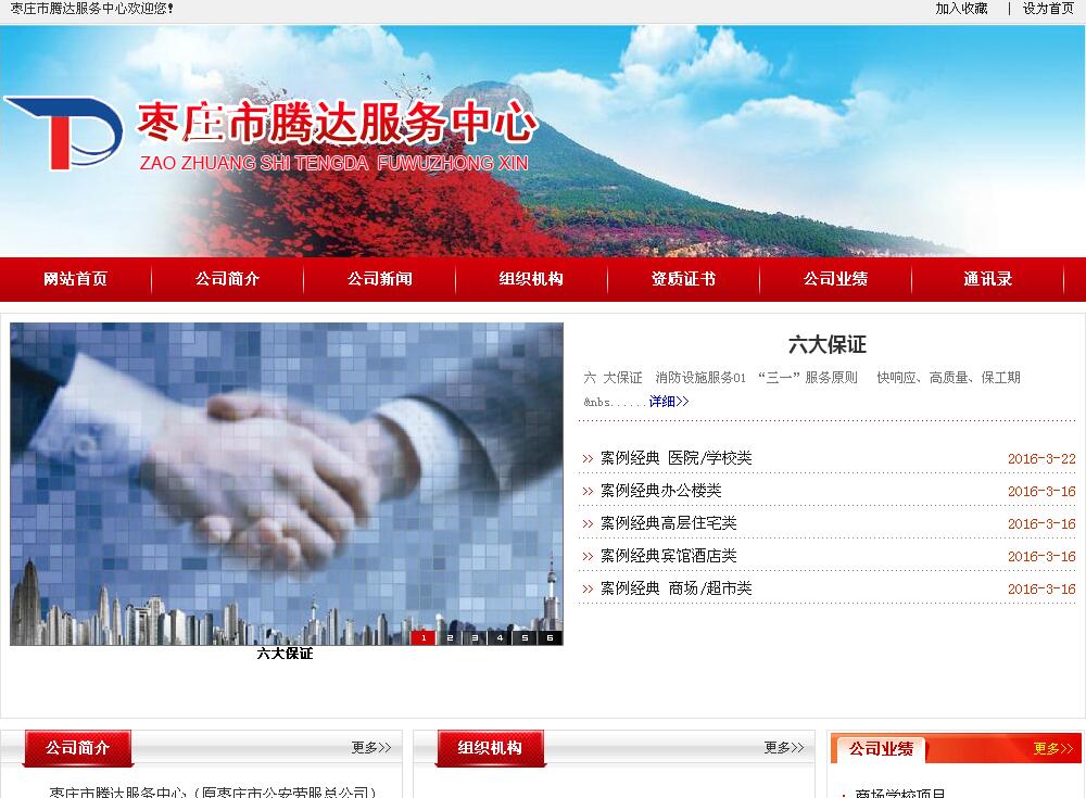 棗莊市騰達服務(wù)中心(原棗莊市公安勞服總公司)成立于1979年,屬國有企業(yè),1992年被山東消防總隊批準具有國家消防設(shè)施工程專業(yè)的承包二級資質(zhì)的市級重點單位、山東省消防協(xié)會會員單位、棗莊市消防協(xié)會、棗莊市建筑業(yè)協(xié)會理事單位,專業(yè)從事自動消防系統(tǒng)工程的設(shè)計、施工、安裝和維護保養(yǎng)。主要承接各類建筑工程的室內(nèi)外消防水系統(tǒng),火災(zāi)、報警系統(tǒng)、防煙、排煙系統(tǒng)、消防控制系統(tǒng)、安全疏散指示系統(tǒng)消防系統(tǒng)工程。我公司為了使個用戶單位擺脫繁瑣的工作程序,為用戶單位提供從設(shè)計、審批、施工、安裝、調(diào)試、檢測、驗收到培訓(xùn)、定期質(zhì)量檢查、年檢及維修保養(yǎng)的各種售后服務(wù)的一條龍配套服務(wù),盡大能力為個用戶單位排憂解難。多年來,多次被棗莊市委市政府評為“重合同,守信用”信得過單位。 |