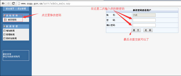 拉到網(wǎng)站的底部,找到信息管理入口點擊進入。或直接打開:http://www.zzgp.gov.cn/zztt/這個地址就可以進入后臺